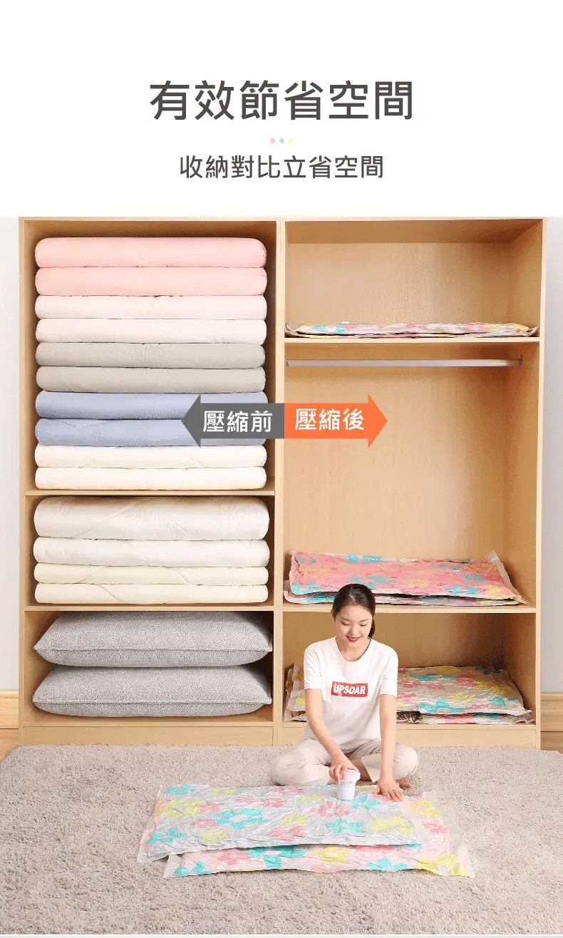 15分鐘前掛式真空壓縮袋推薦,輕鬆節省衣櫃空間 - 【買2送2】尺寸任選★贈電動抽氣機★ NT$799