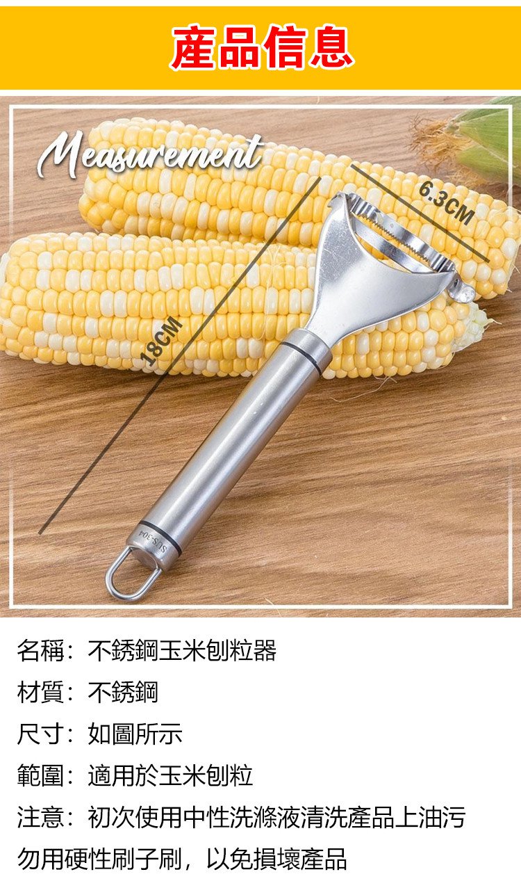 20分鐘前火爆熱賣 不銹鋼玉米刨粒器 鋒利鋸齒,剝落乾淨,絕不浪費 剝玉米,胡蘿蔔皮 土豆皮,304不鏽鋼材質,易於清洗 - 【新品特賣】5入組-NT$980