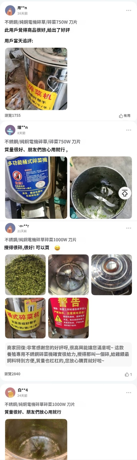 4分鐘前【養殖好幫手】多功能碎菜機,碎菜只需1秒,廠家直銷,貨到付款 量大優惠! - 800W不鏽鋼台式碎菜機--NT$3590